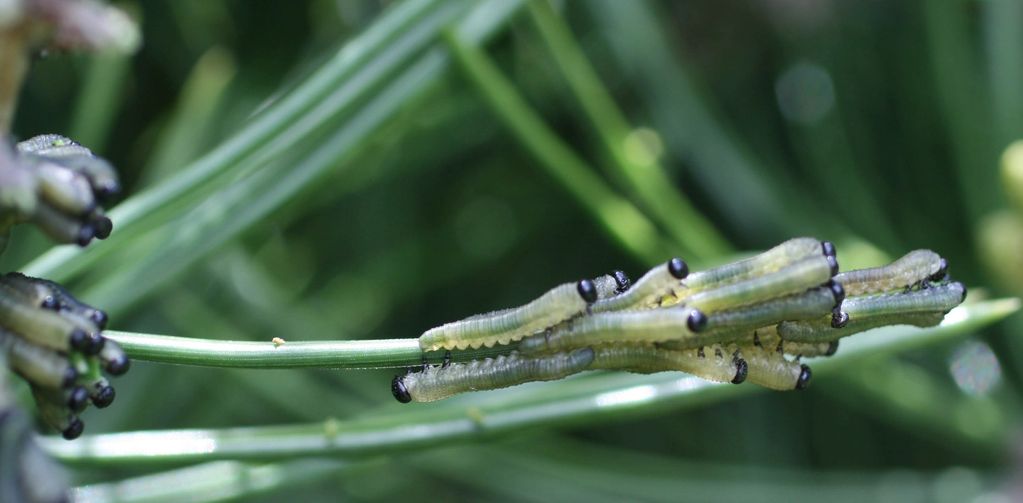 Pine Saw Fly, this is the larval stage that often emerges in May or June. It loves mugs pines and other conifers